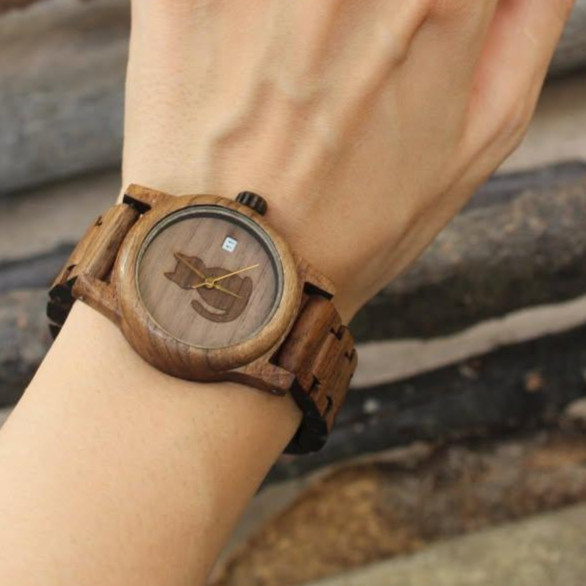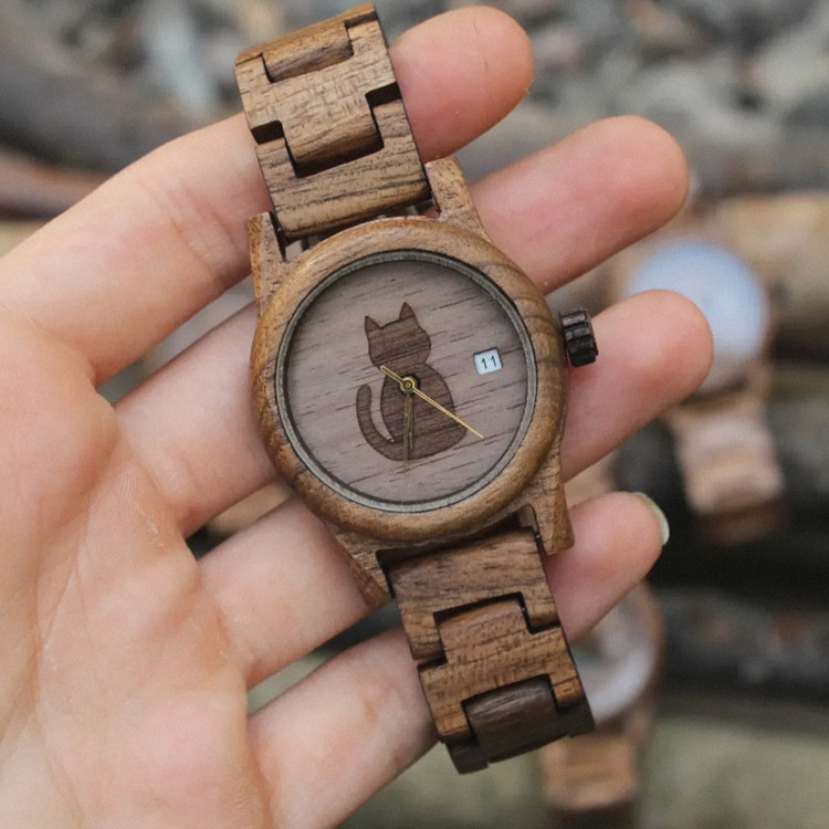 ساعت مچی چوبی دست سازه طرح گربه خاص و شیک