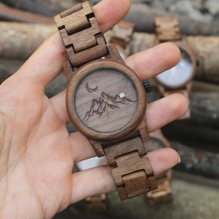 ساعت مچی چوبی دست سازه طرح کوه خاص و شیک