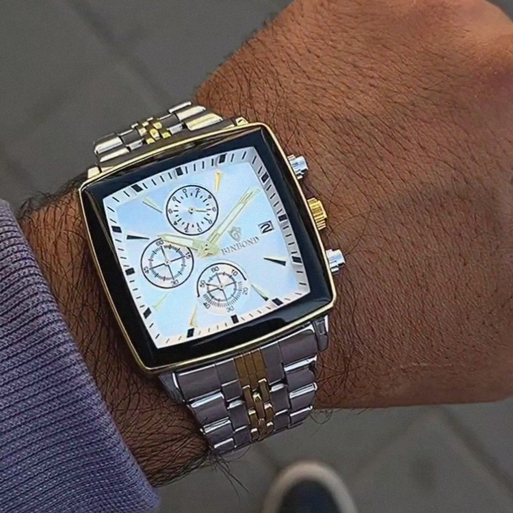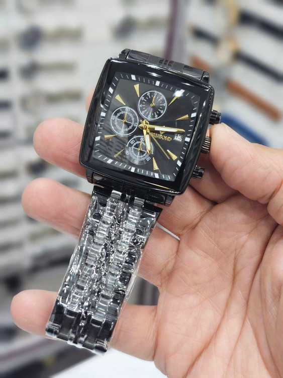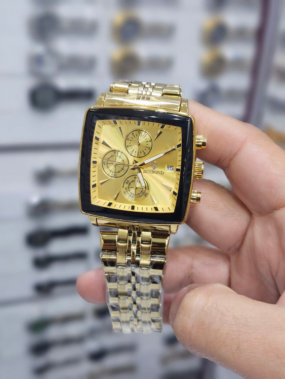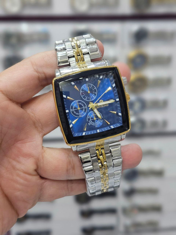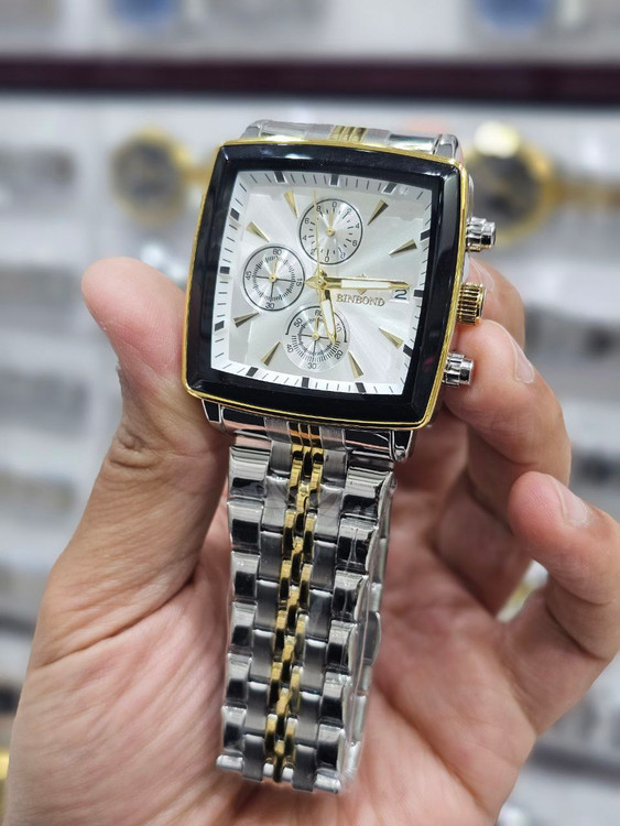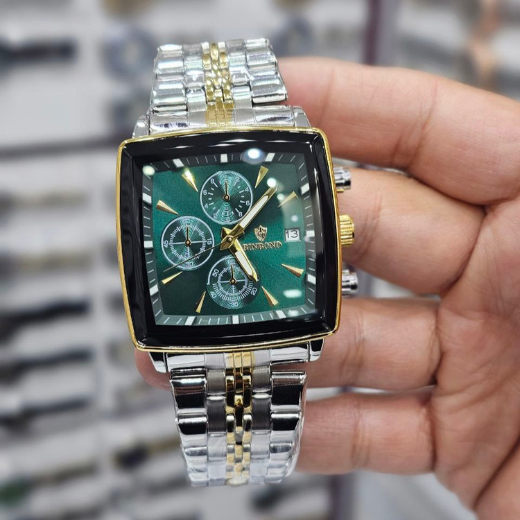 ساعت مچی مردانه بند استیل بین باند BIN BOND کرنوگراف مربعی