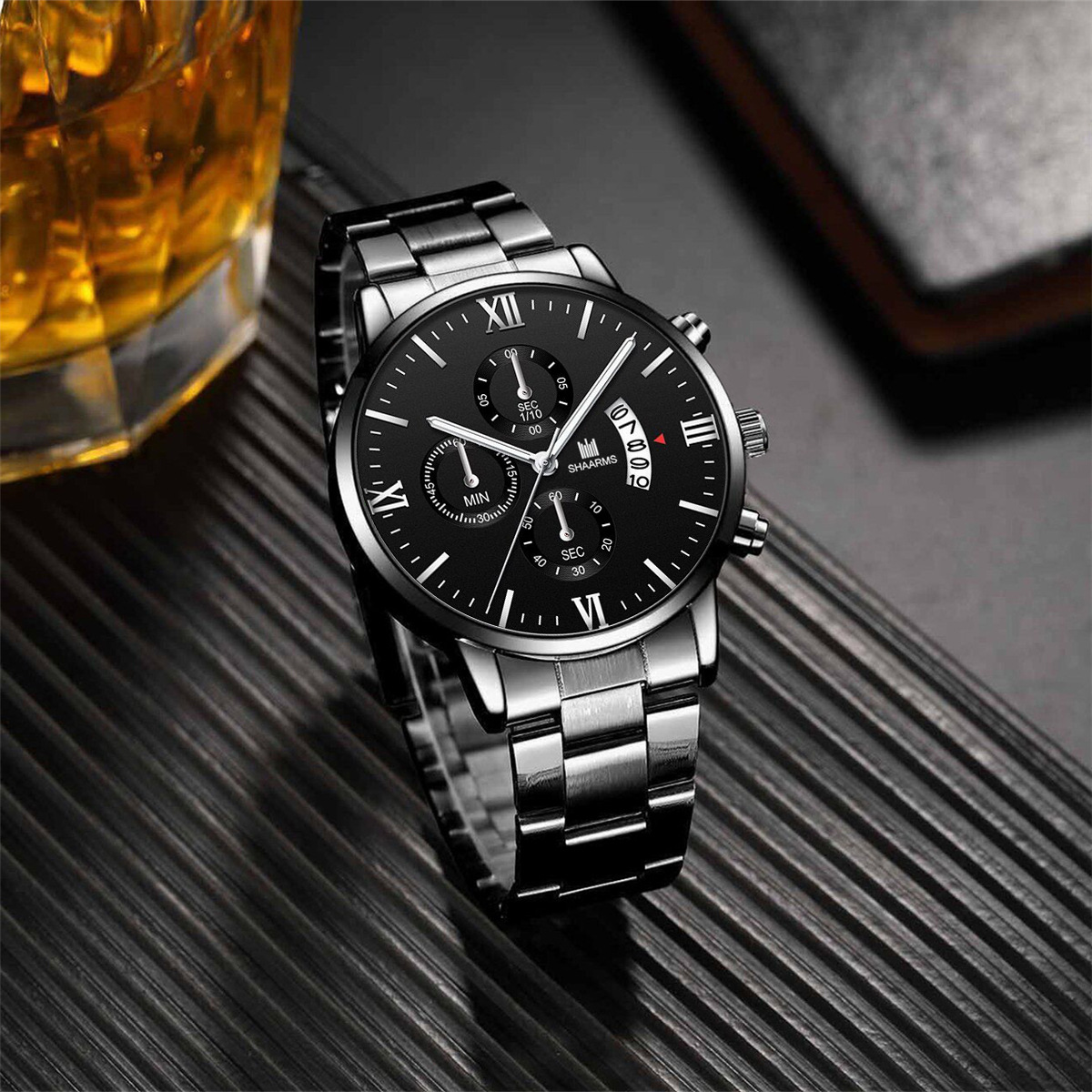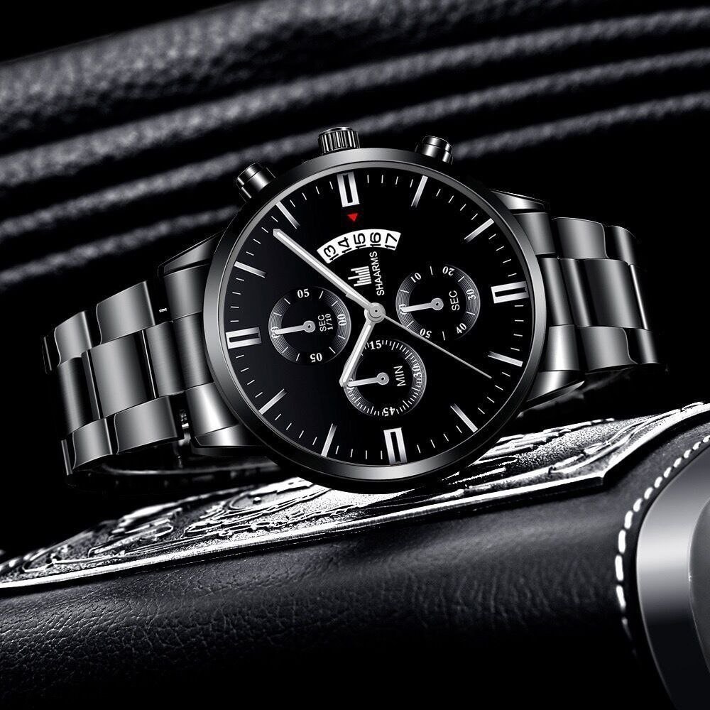 ✅برند SHAARMS ✅طرح کرنو ✅دارای روز شمار ✅قفل کلیپسی ✅موتور کوارتز ✅تقویم هلالی ✅بند استیل ✅شامل ساعت و دستبند ✅ضدحساسیت