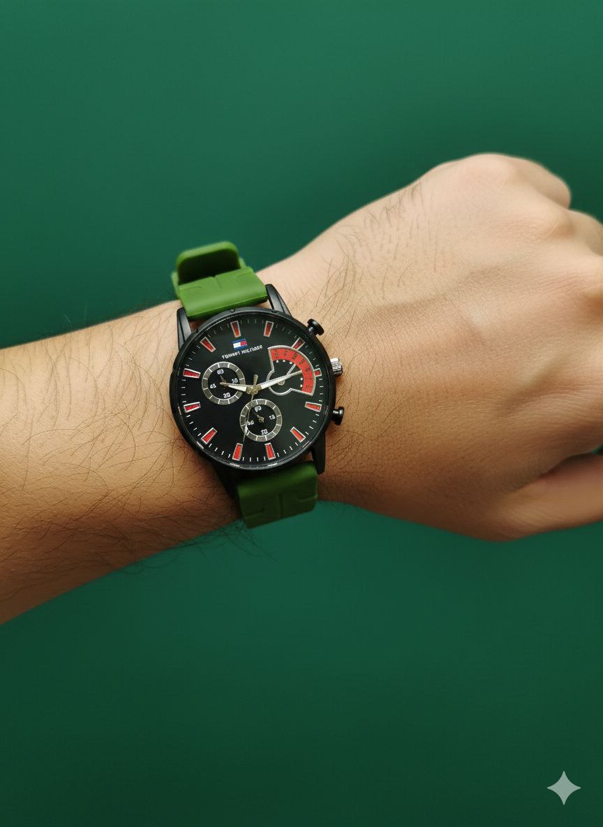 ✅اسپرت SPORT ✅برند Tommy Hilfiger ✅پسرونه رنگی ✅تقویم ندارد نمایشیه ✅شرکتی با کیفیت ✅بند پیو ✅قفل سگکی ✅موتور کوارتز ✅ضدحساسیت