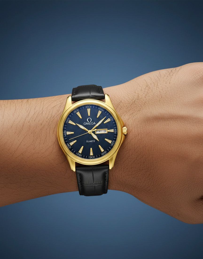 ساعت مچی مردانه بند چرمی کلاسیک امگا Omega ضد حساسیت