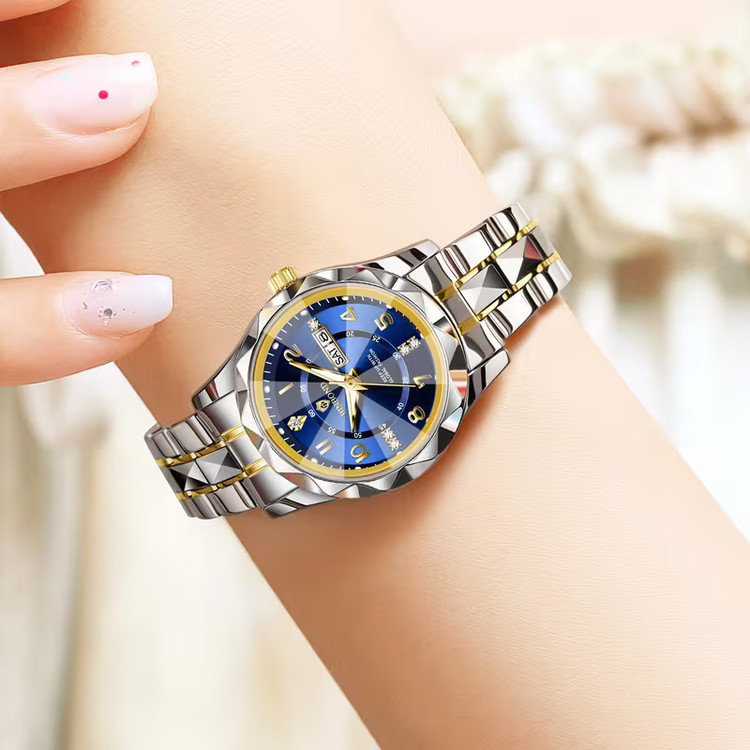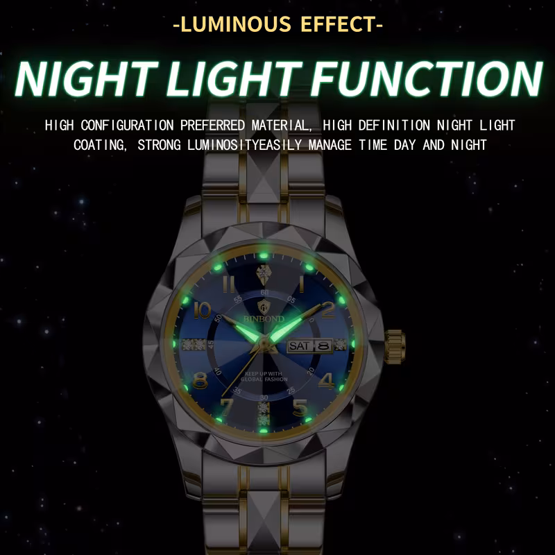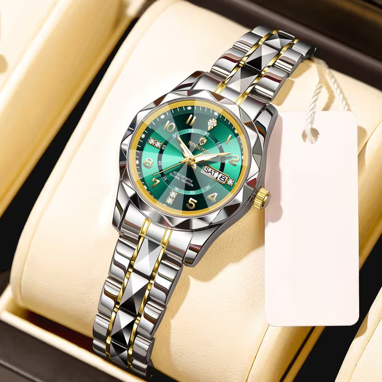 ساعت مچی زنانه بند استیل بین باند BIN BOND شیشه الماسی و شب نما