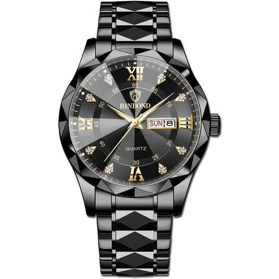 ساعت مچی مردانه بند استیل بین باند Bin bond صفحه الماسی و ضدآب