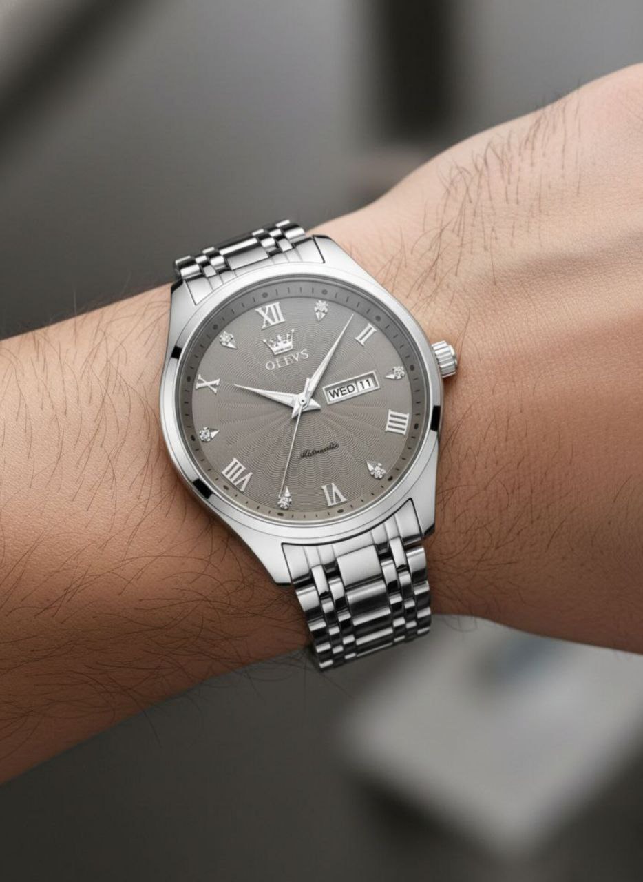 ساعت مچی بند استیل مردانه الوز ضدآب طرح یونانی الماسی