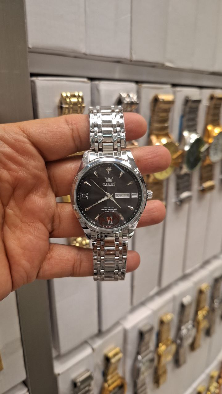 ✅الوز olevs ✅کیفیت بالا ✅مردانه طرح الوز ✅موتور کوارتز ✅مقاوم در برابر آب ✅طرح یونانی الماس ✅دارای روز شمار و ایام هفته ✅بند وستاری