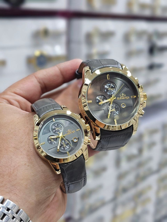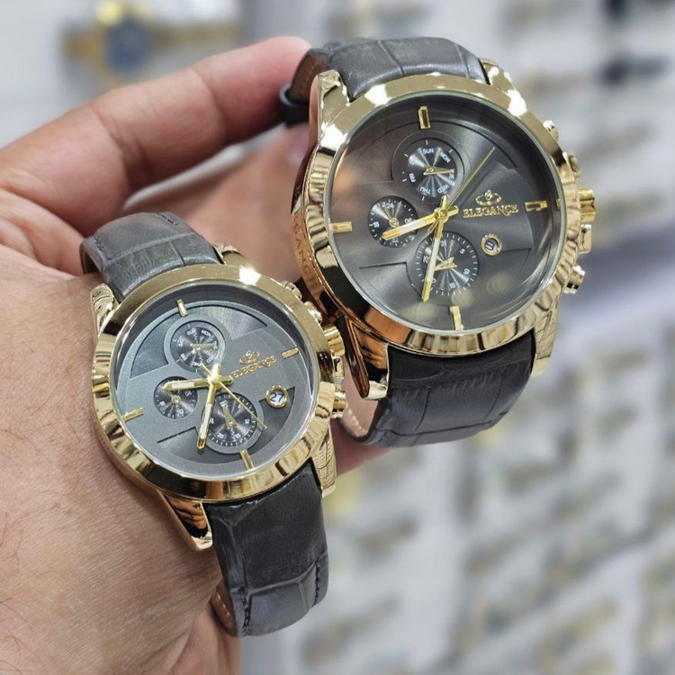 ست ساعت مچی بند چرمی زنانه و مردانه فیکس الگانس موتور ژاپن