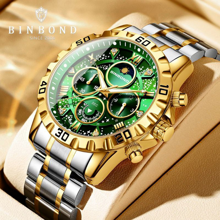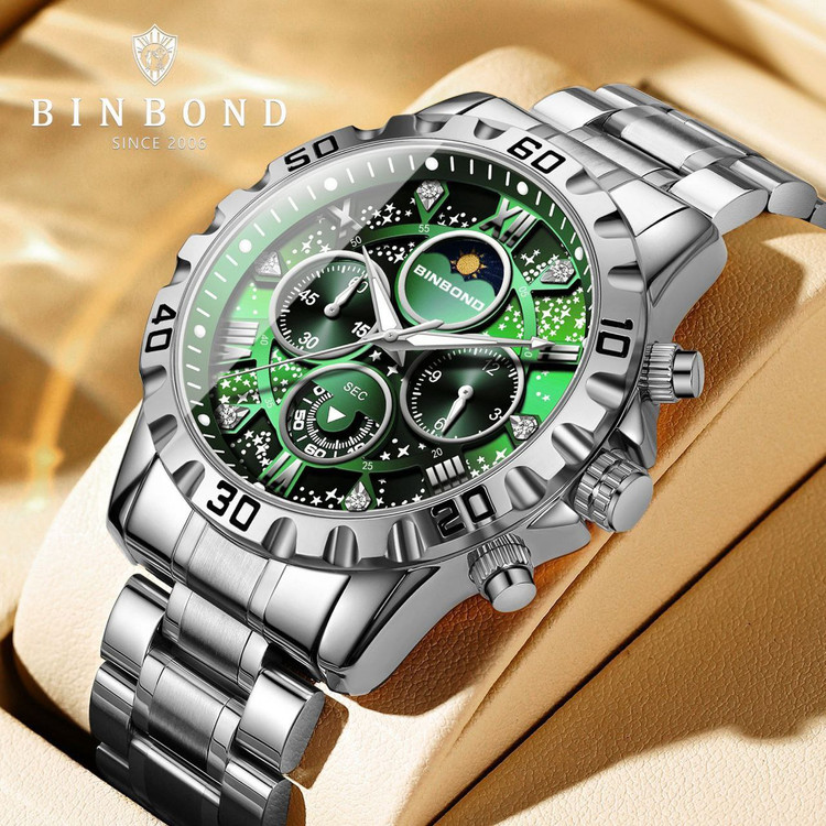 ساعت مچی بند استیل مردانه بین باند قاب الماسی کرنوگراف